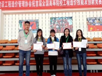 SHNU: On November 31st, first National Project Cost and Innovation Contest was held at Tianjin University of Technology. The SHNU team from College of Architecture and Engineering won the first prize for architecture and decoration project calculations, and a group third prize. The three winners could receive their certificates of Project Cost Professionals after graduation.