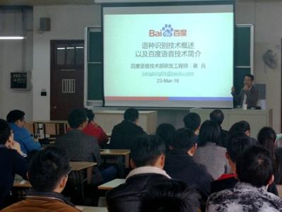 Dr. Jiang briefed on the latest development of language identification research home and abroad and relevant product research while sharing his creative work in field of language identification. He also introduced requirements and selection of graduates of Baidu Voice Tech Department.