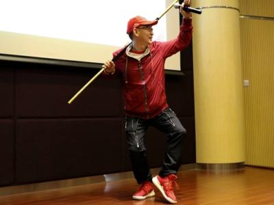 He shared some of his life philosophies from the angle of Chinese traditional culture and his own acting experience. He stressed the importance of ends rather than the means. He fascinated the audiences with his effective language and rich facial expressions and won rounds of applause. He even played with his MKB (Monkey King Bar, the golden cudgel or Ruyi Jingubang), which attracted continuous cheers from the audiences.