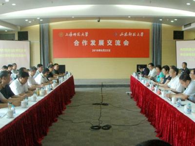 SHNU President Zhu extended warm welcome to visitors from Shandong Normal University. During the conference, SHNU university management systems, innovative talent cultivation, reformative disciplines mechanism, human resource system reforms, and international exchanges were introduced.