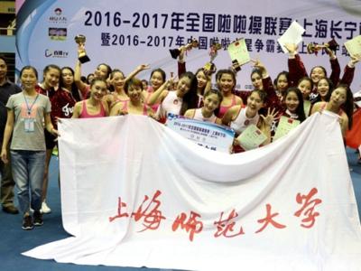 SHNU:The China Cheering Squad Star Contest Shanghai Region was held at Shanghai International Gymnastics Center. The SHNU squad tops in Pompon Optional Exercise Group, Street Dance Group, Group Street Dance Optional Exercise and Group Free Dance Optional Exercise.