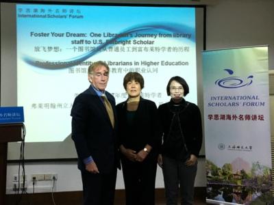 SHNU: On November 16th, Shin Freedman, Professor of Library Academic Resources of Framingham State University of the US, visited SHNU and spoke at Xuesihu Overseas Masters’ Forum themed Starts Your Dream: A Librarian to Become Fulbright Scholar. It was hosted by Vice Director of SHNU Library.
