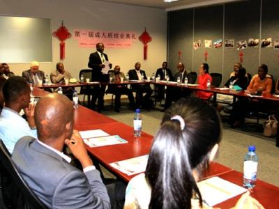 SHNU:On February 21st, the Closing Ceremony of 1st Chinese Language Classes for Adults was held in Botswana by CI (Confucius Institute) of University of Botswana (UB). The CI of UB is co-sponsored by SHNU. It was attended by President of Botswana University of International Science and Technology, and two vice presidents, Chief of Palapye, where the university is located, Vice Dean of College of Humanities and Literature of UB, and Foreign Dean of CI of UB, Chinese Dean of CI of UB, and other representatives of the Chinese Language Classes.
