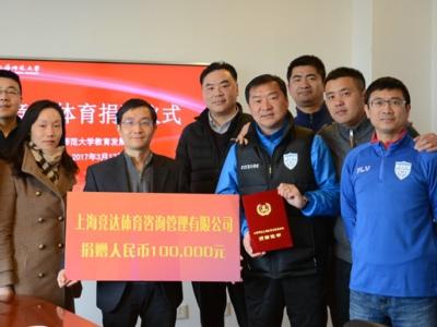 SHNU:On March 17th, Shanghai Jingda Sports Consulting Management Co., ltd. Donated RMB 100, 000 Yuan (USD 14,300) to SHNU at Room 1004 of Administrative Building. The SHNU Vice Party Secretary and Vice President Ge Weihua received the donations on behalf of the university. It was attended by the management staffs of Jingda and representatives from SHNU College of Physical Education and SHNU Education Development Foundation.