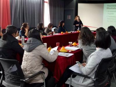 SHNU:On March 31st, Dr. Mary Huges, was invited to SHNU for hosting a workshop on English education to promote the development of English education in SHNU. More than 20 English teachers attended the workshop sponsored by SHNU College of Foreign Languages.