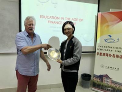 Professor Peters described the rapid development of global economy in financial times and intimate relationship between education and economy and arrived at the conclusion that education played an essential role in economic development. He also probed career plans with the students after the speech.