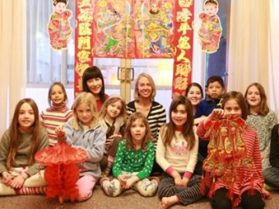 SHNU: Recently, at the invitation of primary and middle schools in Columbia, the SHNU Confucius Institute of the University of Missouri carried out a lecture tour in Columbia, giving knowledge about Calligraphy, Spring Festival, paper-cut, diabolo and Tai Chi, all typical of Chinese culture. Teachers of CI arranged classrooms with decorations that Chinese used to celebrate the Spring Festival like couplets, paper-cutting pasted on panes, lanterns. They also taught the Chinese song “Congratulations to You” (usually sung in festivals) to the students. Tai Chi lecture triggered interests of local students and teachers and they followed the Chinese teachers to do Tai Chi earnestly. While in the 1-hour calligraphy lecture, the audience experienced the charm of Chinese calligraphy and miraculous Chinese characters. Under the guidance of CI teachers, every child present could write the Chinese character “Fu” (meaning good fortune).