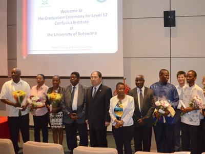 SHNU: The graduation ceremony for Level 12 students of the Confucius Institute (CI) of the University of Botswana (UB) was held at the library of UB on March 28.