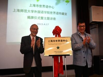 SHNU: The Shanghai Esperanto Center was launched in SHNU on April 17. Nearly 100 experts, scholars and representatives including Former SHNU Party Secretary Lu Jianfei, leaders from Shanghai Federation of Social Science Associations and Shanghai Esperanto Association (SEA) as well as teachers and students were present at the ceremony. Jointly established by SHNU Foreign Languages College and SEA, the center will carry out activities including Esperanto publicizing, teaching and training, scientific researching and academic exchanging in Esperanto both at home and abroad. Also, the two sides set up the Special Collection Room of SHNU Foreign Languages College, collecting nearly 2,000 Esperanto books, dictionaries and textbooks. Most of these books are obtained overseas and some very rare and precious. Wang Minhao, President of Shanghai Esperanto Association and Prof. Li Zhaoguo, Dean of SHNU Foreign Languages College acted as the directors of the center and Prof. Lu Jianfei engaged as the advisor. Mark Fettes, President of Universal Esperanto Association (UEA), who was specially invited to attend the ceremony, delivered a lecture entitled Education Value of Esperanto—Cultivating Language Lovers. |