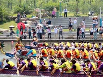 SHNU: To celebrate the Dragon Boat Festival, the 4th Dragon Boat Race of SHNU was held in Tonghai Lake of East China University of Science and Technology on June 6. Teams from 24 colleges and departments of SHNU took part in the competition. SHNU Party Secretary Teng Jianyong said that the theme of the race fully displayed the spiritual outlook of SHNU staff who are determined to inherit the traditional Chinese culture and realize the Chinese dream. He announced the opening of the race and depicted the eyes of the dragon boats together with SHU Vice President Gao Jianhua and Ke Qinfei. After several rounds of competition, the Logistic Center won the first place, the No.4 Middle School Attached to Shanghai Normal University ran the second and administrative organ was the third prize winner. |
