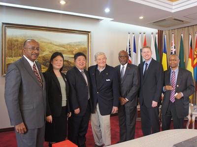 SHNU: On December 3, the former American Missouri Senator Christopher Bond visited SHNU, accompanied by Charlie,Handy William ,Vice President of University of Missouri, Foreign Director of Confucius Institute of University of Missouri, etc. SHNU: SHNU Party Secretary Lu Jianfei and SHNU President Zhang Minxuan received the delegation and had a warm talk together. Zhang Minxuan extended welcome to the delegation and introduced great changes in Shanghai since China’s reform and opening up. He also gave some introduction about the development and achievements of SHNU and expressed his wish to establish cooperation with universities and corporations in Missouri. Senator Christopher Bond, Vice President of MU Handy William and Vice County Magistrate Charlie also gave talks. After the meeting, SHNU leaders and American delegation had more understanding about each other and anticipated prospect of cooperation. Other companions include stuff from International Exchange Center and Africa Research Center. (Translated by Shao Suya) |
