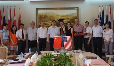 Kristin made this trip to Shanghai to confer the master’s degree to Hu Hengzhi, the first student graduated from a co-operative program of geography and information system majors between SSU and SHNU. This is a program started from the exchange agreement between the two universities signed in July, 2010.