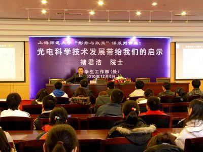 SHNU: On December 8th, Chu Junhao, Chinese expert of semiconductor physics and appliances, and member of Chinese Academy of Sciences (CAS), and SHNU alumnus, delivered a speech themed Revelations of Development of Photoelectric Technology.