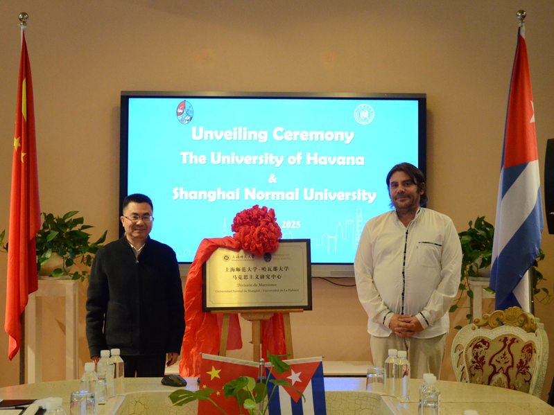 On October 24th, during a visit to Cuba, Vice President Li Ye, along with Mariam Hernández Colina, First Vice President of the UH, jointly inaugurated the UH-Shanghai Normal University Joint Center for Higher Education Studies and the University of Havana-Shanghai Normal University Marxism Research Center. Attending the inauguration ceremony were Wang Jian, Dean of Academic Affairs of SHNU, Zhang Zhidan, Dean of the School of Marxism, Kirenia Rodriguez Puerto, Director of International Exchange at the UH, Yelenne Díaz Lazo, Head of Public Education in Marxism, Alina Forreliat Barrios, Director of Quality Management, Ariel Terrero Escalante, Dean of the School of Media and Communication and heads of various departments at the University of Havana. In his speech, ice President Li Ye noted that this year marks the 65th anniversary of diplomatic relations between China and Cuba. Recently, leaders of both countries emphasized the need to strengthen comprehensive strategic cooperation and steadfastly advance the construction of a China-Cuba community with a shared future. Mariam Hernández Colina expressed sincere gratitude to our university and stated that the UH would work together with SHNU to build the joint centers into exemplary models of higher education in Cuba. Subsequently, the two universities jointly signed a memorandum of understanding on the establishment of the Joint Center for Higher Education Studies (CHES) and held in-depth discussions on the operation of the two centers, as well as faculty and student exchanges between the institutions. The inauguration of these overseas centers for higher education studies and Marxism research marks a new phase in the internationalization of higher education at our university, as well as a valuable practice in actively expanding overseas student recruitment and enhancing the quality of international students. Both sides introduced their respective educational missions and distinctive features, engaged in detailed discussions on faculty exchange and training programs, reached consensus on implementing specific cooperation initiatives, and signed a conference memorandum.